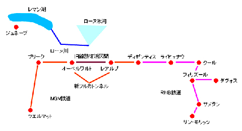 両社とも自社部分だけの各駅停車を運行していますので、氷河特急に乗らなくても、乗り換えながら行けば、全路線を走破することが出来ます。またツエルマットからサン・モリッツまでの270KMを乗り換えなしで、氷河特急に接続する大きな展望窓のパノラマ車両(プレミアム