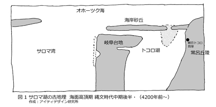 その後、時代は経過し、[擦文・オホーツク文化(約1000~1200年前)]に、オホーツク海側に新たな砂丘が発達したことによりサロマ湾は閉塞し、サロマ湖が誕生し、トコロ湖は常呂川のから運ばれた土砂により埋め立てられ湿原化したのである