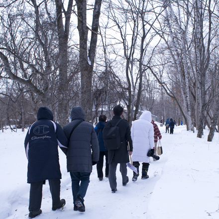 東大 常呂資料陳列館の見学を終て、ところ遺跡の森・駐車場まで、冬の道を歩く、けっこう、しんどい、バスで浜佐呂間 (株)斉藤商店に向かう。常呂遺跡のご案内を戴いた、東京大学の熊木教授・ところ遺跡の舘の中村係長が寒い中、バスの出発を手を振って見送って戴いた、感謝の気持ちでいっぱいです