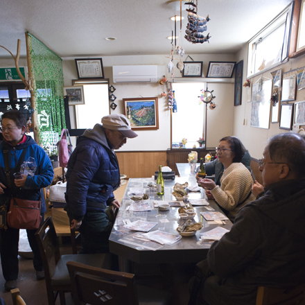 事前に、牡蠣の蒸し料理を予約していた、早速、お食事処 白帆 で試食が始まった、サロマ湖の2年物です、白ワイン・MONTES ALPHA と共に美味しく楽しみました。産地の新鮮さは流石です